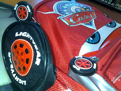 Aiman suka sangat dengan McQueen ni...Aku pilih yang ada tyre kat zip. Senang nak bukak tutup.